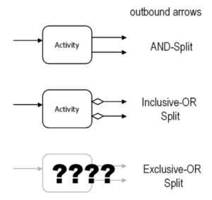Let me give you a concise example. In BPMN you can define an activity to have multiple outgoing arrows. Does this mean that all, some, or one arrow will be activated when the activity is completed? There are three cases to consider: