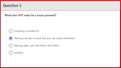 The most important aspect of a strong password, is that it is easy to remember. When you have 30 to 40 passwords to use just for the official job functions (not counting all the personal online services) it can be a challenge to keep them all straight. A hard to remember password will be written down … because it is hard to remember. Duh!