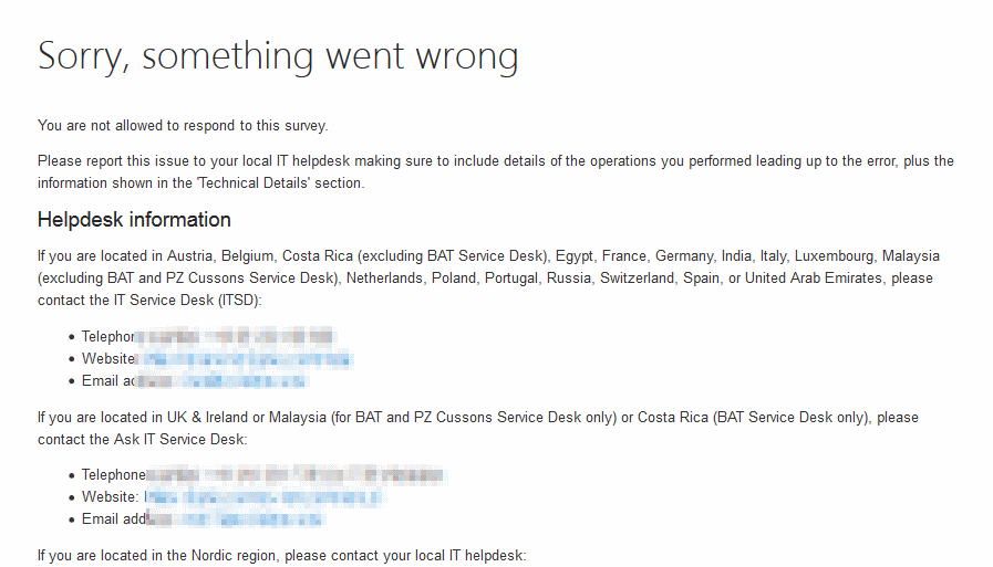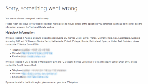 I got done with another course, and the last step of that course was to fill in a survey. I linked to the appropriate page, Logged in carefully. The instructions said to press a button to fill in the survey. This is what was presented to me: