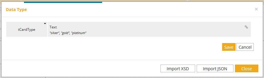 You then add a constraint on the value. A constraint can be expression, range, or enumeration in the tools that I tested. Enumeration simply means that you are going to supply all the possible values right here when defining the type, and no other values will be allowed. It becomes an easy job to enter “silver”, “gold”, and “platinum” into the list provided and save it.