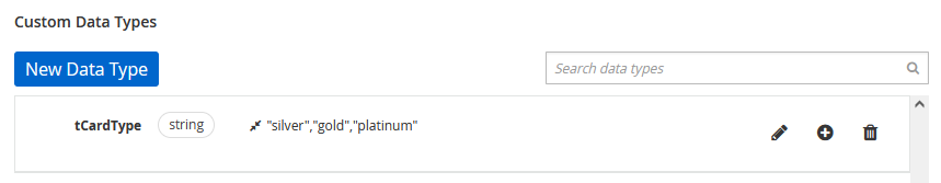 An enumeration then is a data type that is restricted to a particular set of values. You create a data type. It seems that in the DMN community the standard pattern is to name this data type starting with a lower case t. For example: tCardType. This is not required by the spec, and so this is really more of a style, however if everyone does it, then you have the advantage that you can easily recognize data types from all the other values you see on the screen. This style seems useful to me.